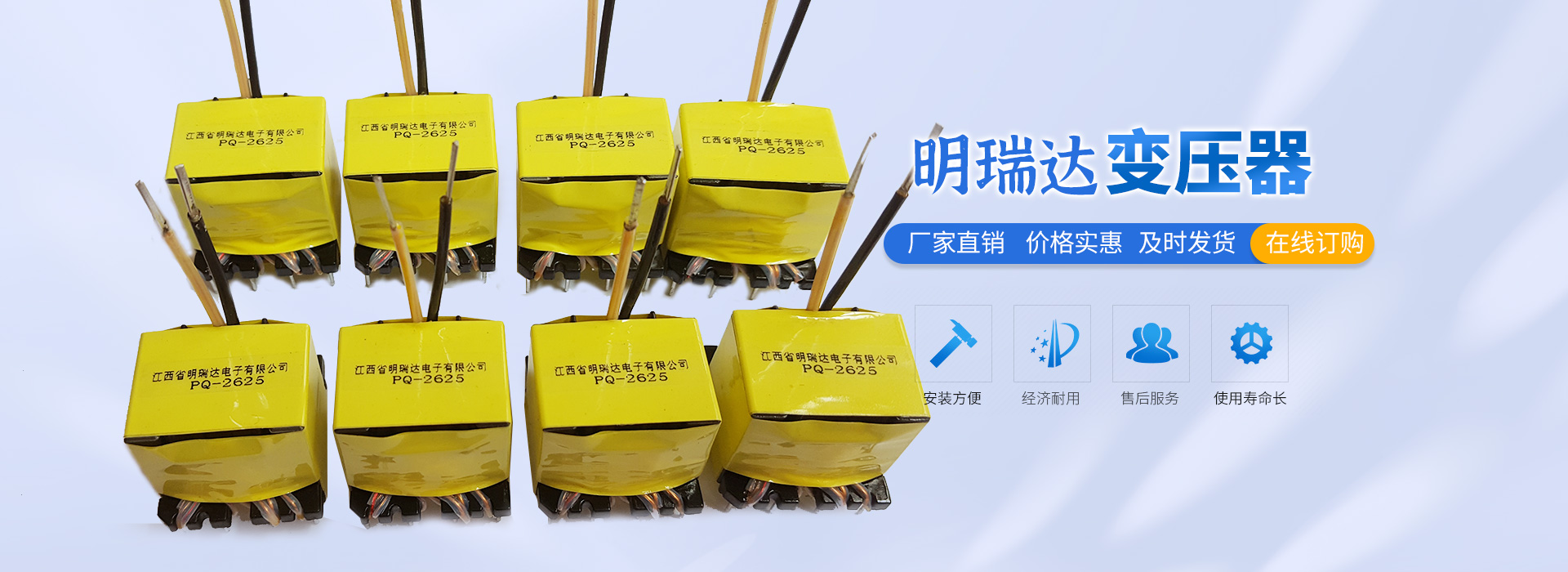 江西省明瑞達(dá)電子有限公司座落于江西省贛州市石城縣,是一家研發(fā)、生產(chǎn)、銷(xiāo)售各種變壓器廠商。生產(chǎn)銷(xiāo)售、技術(shù)服務(wù)、產(chǎn)品研發(fā)為一體的綜合性企業(yè),主要生產(chǎn)、銷(xiāo)售產(chǎn)品:變壓器(EE型、ER型、PQ型、RM型、POT型、UU型、DR型等產(chǎn)品),主要適用于:開(kāi)關(guān)電源、適配器、機(jī)頂盒、液晶電視、空調(diào)、冰箱、LED、電腦、音箱、DVD、飲水機(jī)、電磁爐等各種家用電器及航空、醫(yī)療事業(yè)。